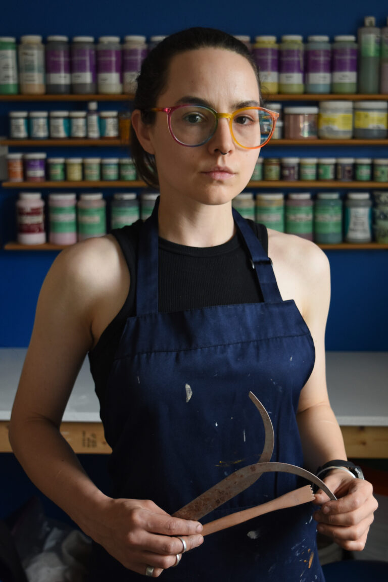 These days, instead of being held hostage by insecurities, I channel that compulsion into my studio work. I create ceramic portraits that capture inner dialogues frequently absent in fine art depictions of the female form. I'm interested in how the minutiae of a singular moment can crystalize, distilling the emotive into something expansive and universally experienced. Often, that means being vulnerable. Let's be honest; if you meet me, you're 100% thinking about my facial hair.
